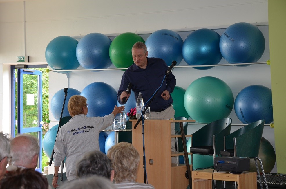 Oberarzt Dr. Peter-Ingo Scharrenbroich erklärte anschaulich die verschiedenen Möglichkeiten der Therapien bei COPD